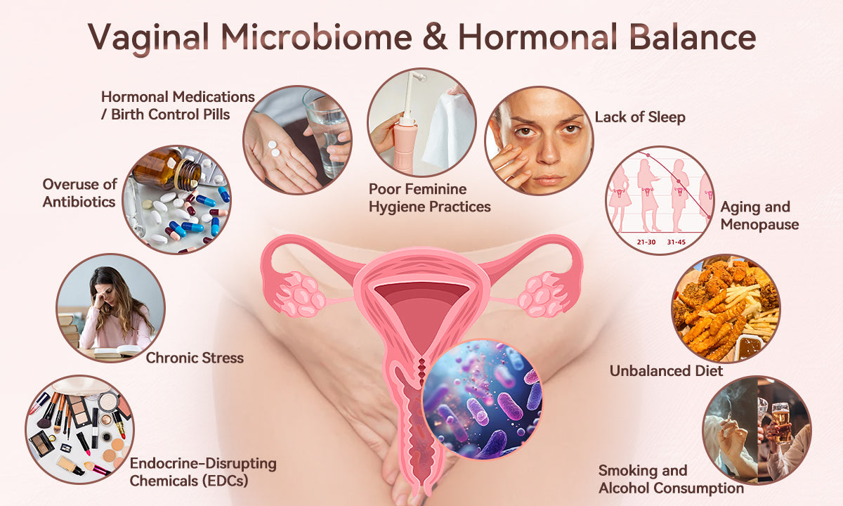 Most feminine discomforts don’t start with infections alone—they begin with a breakdown in your hormonal and vaginal ecosystem. Fluctuating estrogen, stress, and environmental toxins (like endocrine disruptors in plastics and cosmetics) weaken your vaginal lining, disrupt pH, and diminish protective Lactobacillus—your natural defense system.